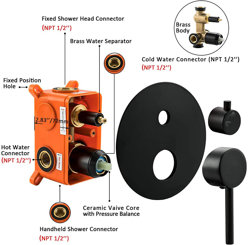Introducing our revolutionary 3 Handle Black Best Shower Valve Faucet System, designed specifically for professionals seeking the ultimate shower experience. Crafted with precision and elegance, this product combines functionality and style to deliver unmatched performance. The three-handle design allows for precise temperature and water flow control, ensuring a customized shower every time. The sleek black finish adds a touch of sophistication to any bathroom, while the high-quality materials guarantee durability and longevity. With easy installation and maintenance, this shower valve faucet system is the perfect choice for professionals looking to elevate their clients' showering experience. Upgrade to excellence with our 3 Handle Black Best Shower Valve Faucet System today!
