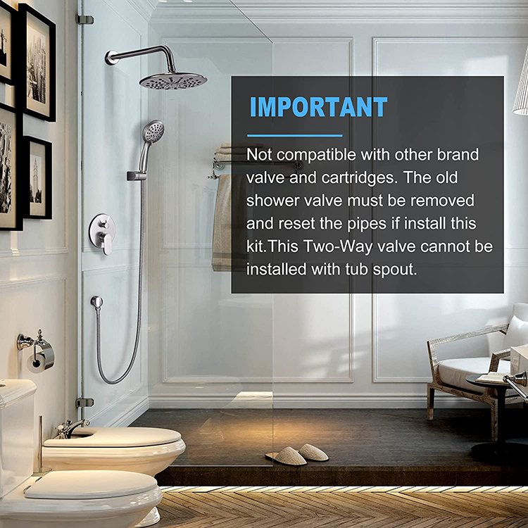 Introducing the Wall Recessed Two Function Shower combo, a perfect addition to your bathroom for a luxurious bathing experience. This sleek and modern shower combo is designed to be recessed into your wall, saving space and giving your bathroom a clean and organized look. With two functions, you can choose between a relaxing rainfall shower or a powerful handheld shower, providing you with the ultimate flexibility and customization. The high-quality materials used in this shower combo ensure durability and longevity, while the easy-to-use controls make adjusting the water flow and temperature a breeze. Upgrade your bathroom with the Wall Recessed Two Function Shower combo and indulge in a spa-like experience every day.