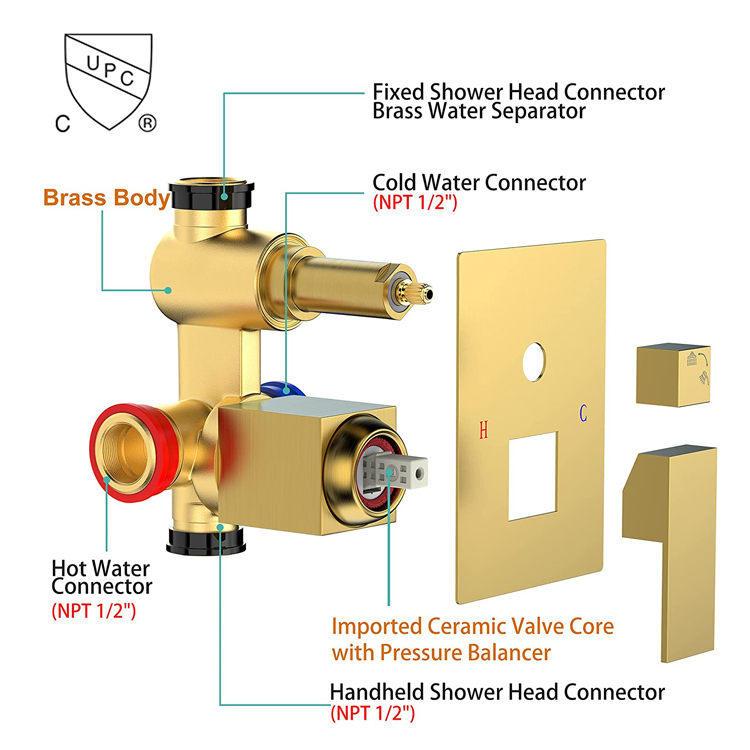 Introducing our exquisite collection of Brass Shower Hardware Fixtures! Crafted with utmost precision and elegance, these fixtures are designed to transform your shower experience into a luxurious retreat. The faucet handles, made from high-quality brass, exude a timeless charm and provide a comfortable grip for effortless control of water flow and temperature. The valve ensures a smooth operation, preventing any leaks or drips. With a sleek and durable design, these fixtures are built to last and withstand daily use. Elevate your bathroom aesthetics with our Brass Shower Hardware Fixtures and indulge in a spa-like shower experience every day.