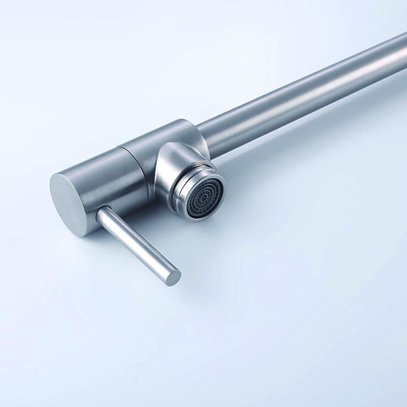 Introducing our 304# Stainless Steel Kitchen Faucet, designed specifically for professionals seeking durability and functionality. Crafted from high-quality stainless steel, this faucet guarantees long-lasting performance and resistance to corrosion. With its sleek and modern design, it effortlessly complements any kitchen decor. The single lever handle allows for easy temperature and water flow control, ensuring convenience during busy cooking sessions. The faucet's swivel spout provides flexibility, allowing you to direct water precisely where it's needed. Easy to install and maintain, this kitchen faucet is the perfect addition to any professional kitchen, providing reliability and style.