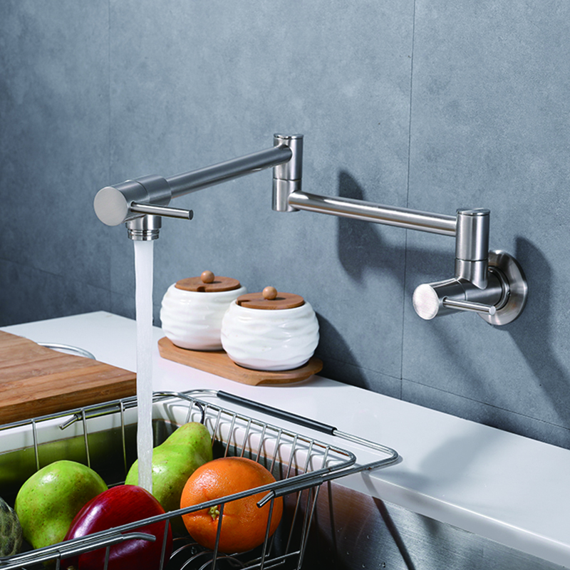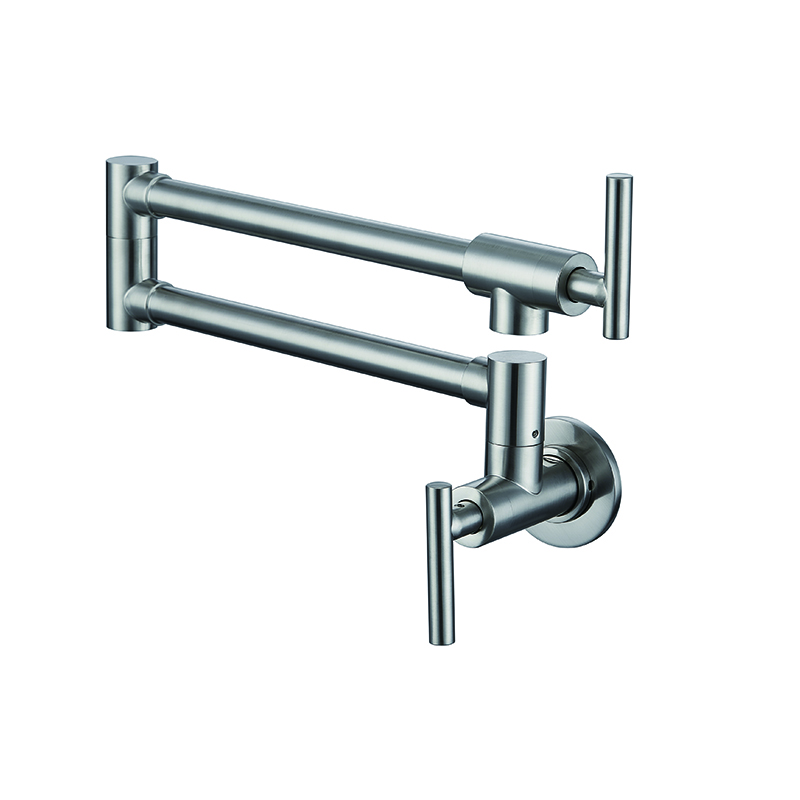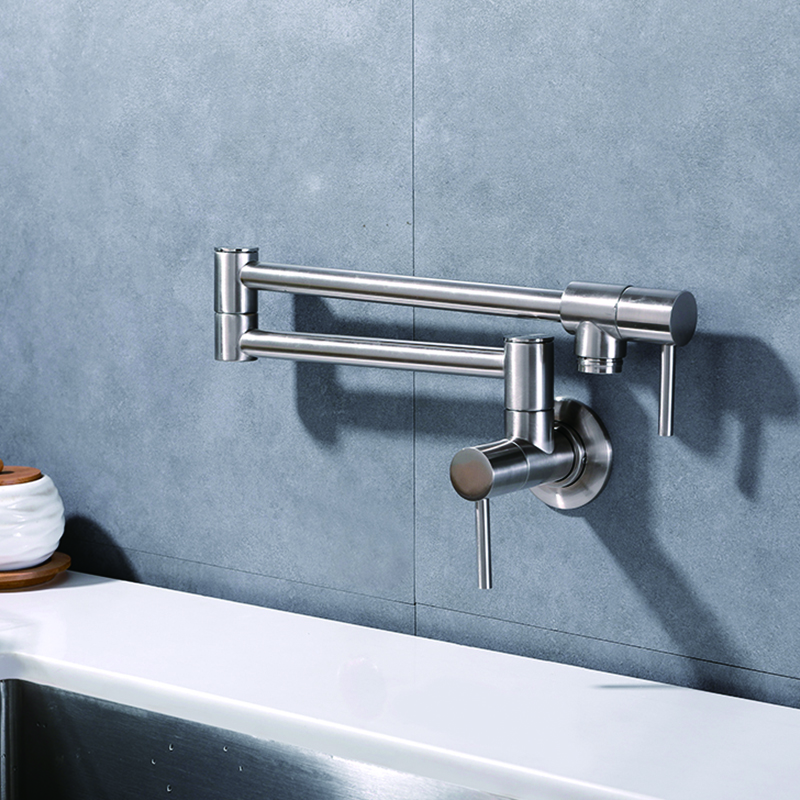 Introducing our premium Wall Kitchen Faucet and Mixer, designed to elevate your culinary experience to new heights. Crafted with utmost precision and durability, this faucet boasts a sleek and modern design that seamlessly integrates into any kitchen decor. Its wall-mounted feature offers maximum convenience and flexibility, allowing you to easily fill large pots and pans without any hassle. The integrated mixer ensures precise water temperature control, enabling you to achieve the perfect balance for your culinary endeavors. With its superior functionality and elegant aesthetics, our Wall Kitchen Faucet and Mixer is the ultimate choice for discerning buyers seeking both style and functionality in their kitchen.