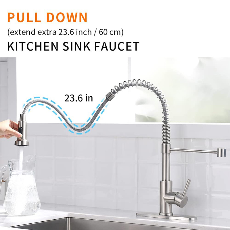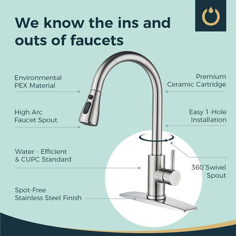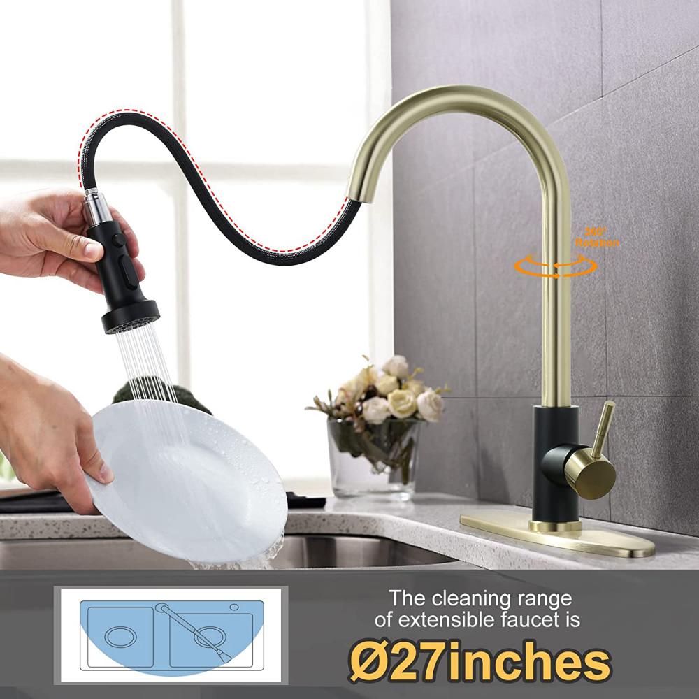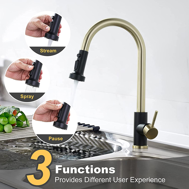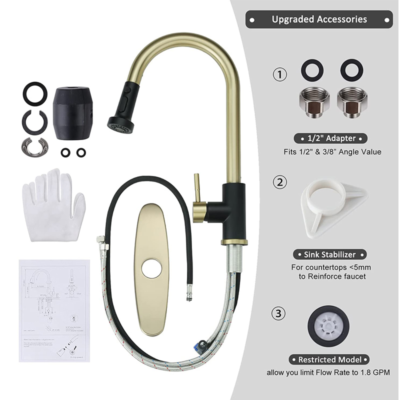 Introducing our high-end, top-rated pull-out kitchen faucet, designed exclusively for professionals seeking unparalleled functionality and style. Crafted with precision and innovation, this faucet effortlessly combines form and function. Its sleek and modern design complements any kitchen decor, while its pull-out feature offers convenience and flexibility for multitasking. The durable construction ensures long-lasting performance, while the easy-to-use controls provide precise water flow and temperature adjustment. With its superior quality and top-notch performance, this pull-out kitchen faucet is the perfect choice for professionals who demand excellence in their culinary endeavors. Upgrade your kitchen today and experience the luxury of this top-rated masterpiece.
