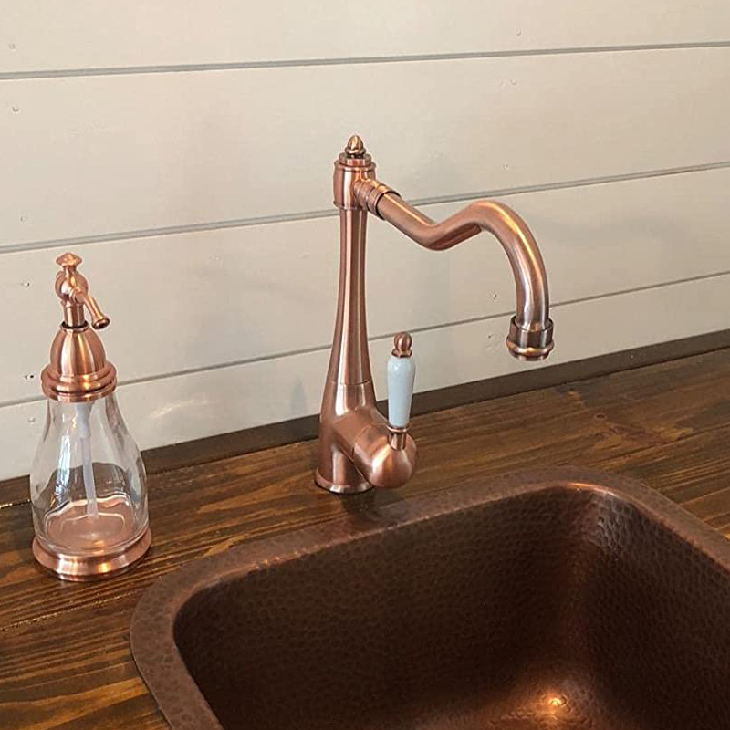 Introducing our exquisite Bronze Champagne Golded Kitchen Faucet Copper Tap Sale! Elevate the style and functionality of your kitchen with this stunning piece. Crafted with precision, the faucet boasts a mesmerizing bronze champagne gold finish that adds a touch of elegance to any space. Made from high-quality copper, it ensures durability and longevity. The single handle design allows for effortless temperature and water flow control, while the swivel spout provides flexibility for various tasks. With its easy installation process and superior performance, this kitchen faucet is a must-have for every modern home. Upgrade your kitchen today and experience the perfect blend of sophistication and convenience!