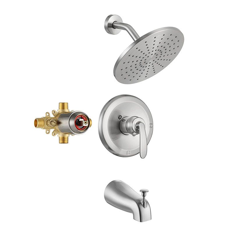 Introducing our Two Handle Tub Spout Shower Faucet with Diverter, the perfect addition to your bathroom oasis! This sleek and modern faucet not only enhances the aesthetics of your space but also offers ultimate functionality. With its dual-handle design, you can easily control water temperature and flow, ensuring a luxurious shower experience every time. The built-in diverter allows you to effortlessly switch between the tub spout and showerhead, providing convenience and versatility. Crafted from high-quality materials, this faucet is built to last and withstand daily use. Upgrade your bathroom with our Two Handle Tub Spout Shower Faucet with Diverter and enjoy a spa-like experience in the comfort of your own home!