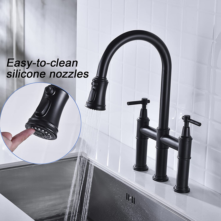 Introducing our Bronze Three Hole Kitchen Pull Out Spray Faucet, the perfect addition to any modern kitchen! This sleek and stylish faucet combines functionality with elegance, making it a popular choice among homeowners and professional chefs alike. The pull-out spray feature allows for easy cleaning of dishes and sink, while the durable bronze finish adds a touch of sophistication to your kitchen decor. With its three-hole installation design, this faucet is compatible with most sinks, making it a versatile choice for any kitchen renovation. Upgrade your kitchen today with our Bronze Three Hole Kitchen Pull Out Spray Faucet and experience the perfect blend of style and convenience!