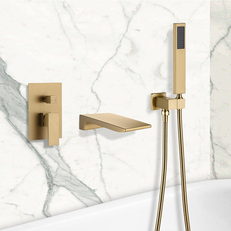 Introducing our Waterfall Tub Wall Mount Bathtub Faucet with Sprayer, a perfect addition to any bathroom. This sleek and modern faucet combines functionality with style, providing a luxurious bathing experience. The waterfall design creates a soothing and calming effect, while the sprayer offers convenience for rinsing and cleaning. Crafted with high-quality materials, this faucet ensures durability and longevity. The wall mount feature saves space and adds elegance to your bathtub area. With easy installation and smooth operation, this faucet is a must-have for those seeking both beauty and practicality. Upgrade your bathroom today with our Waterfall Tub Wall Mount Bathtub Faucet with Sprayer.