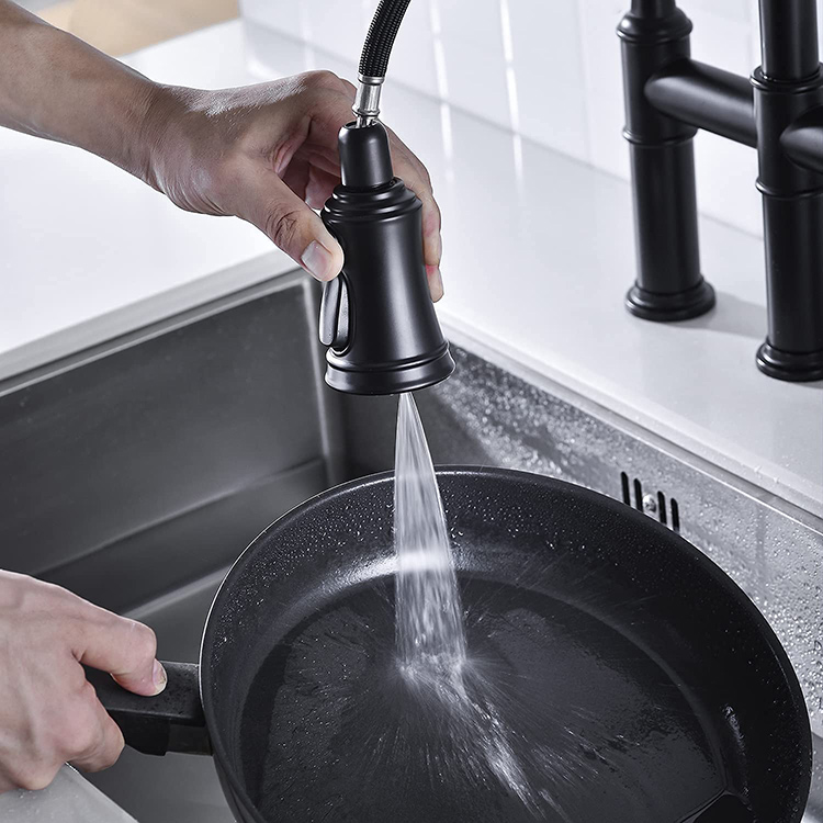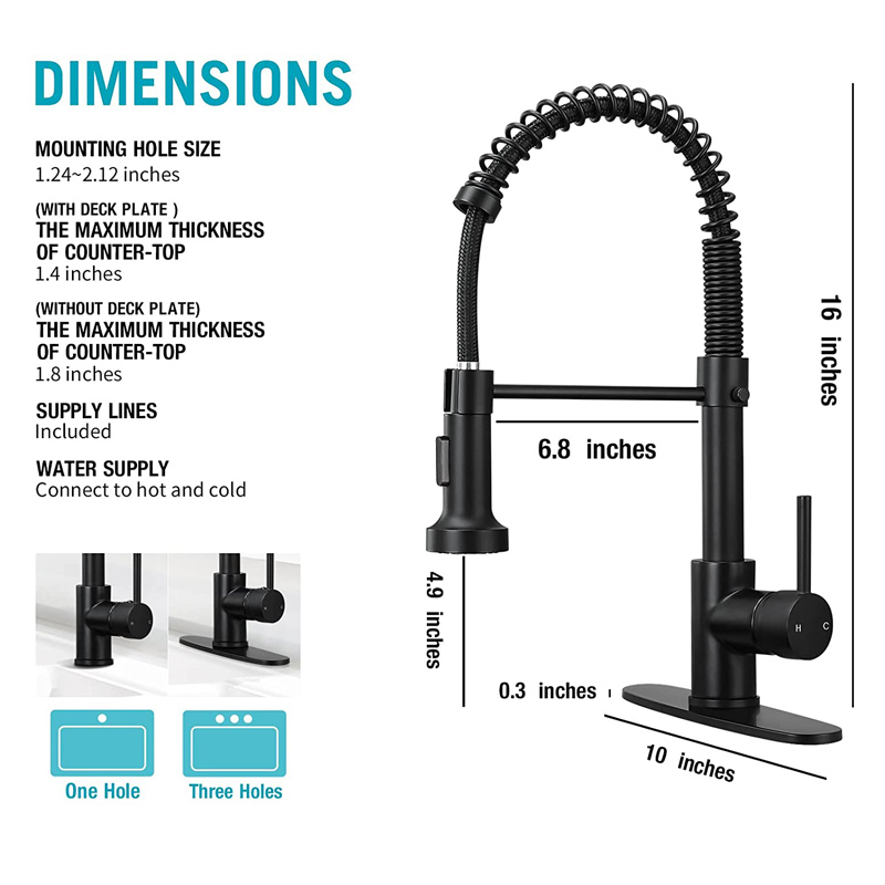 Introducing the One Handle Black Widespread kitchen Spring Faucet – the ultimate superhero of faucets! This bad boy is here to make your kitchen experience a breeze. With its sleek black finish, it's like having Batman guarding your sink. But wait, there's more! This faucet comes with a spring that's more flexible than a yogi doing the splits. It bends and twists like a contortionist, making it easier to fill those oversized pots and pans. Say goodbye to awkward angles and hello to culinary convenience! So, why settle for a regular faucet when you can have a crime-fighting, pot-filling, kitchen-saving hero right at your fingertips? Get yours today and become the master chef you were always meant to be!